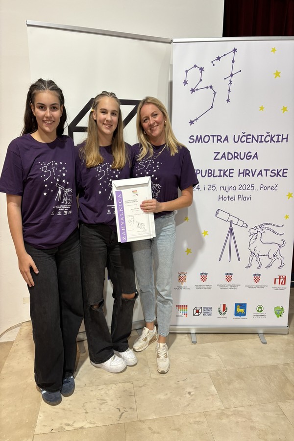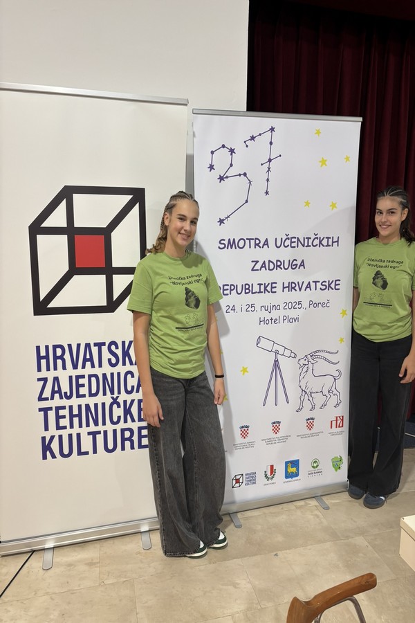 U Poreču je od 23. – 26. rujna 2025. održana 37. državna smotra učeničkih zadruga Republike Hrvatske na kojoj je sudjelovala i naša učenička zadruga Novljanski ogrc. Rad zadruge predstavile su učenice Bruna Šulekić i Lucija Mesić. Pred državnim povjerenstvom izvodile su praktičan rad, izradu staklene zdjele fuzijom stakla i dobile pohvale za spretnost i izvrstan rad. Mentorica je Ivana Begić Mesić. Na državnoj smotri sudjelovalo je 60 zadruga iz cijele Hrvatske. Zadrugarke su sudjelovale na zajedničkim radionicama, družile se i razmijenile iskustva s drugim zadrugarima. Iz Poreča su se vratile pune dojmova i lijepih uspomena.