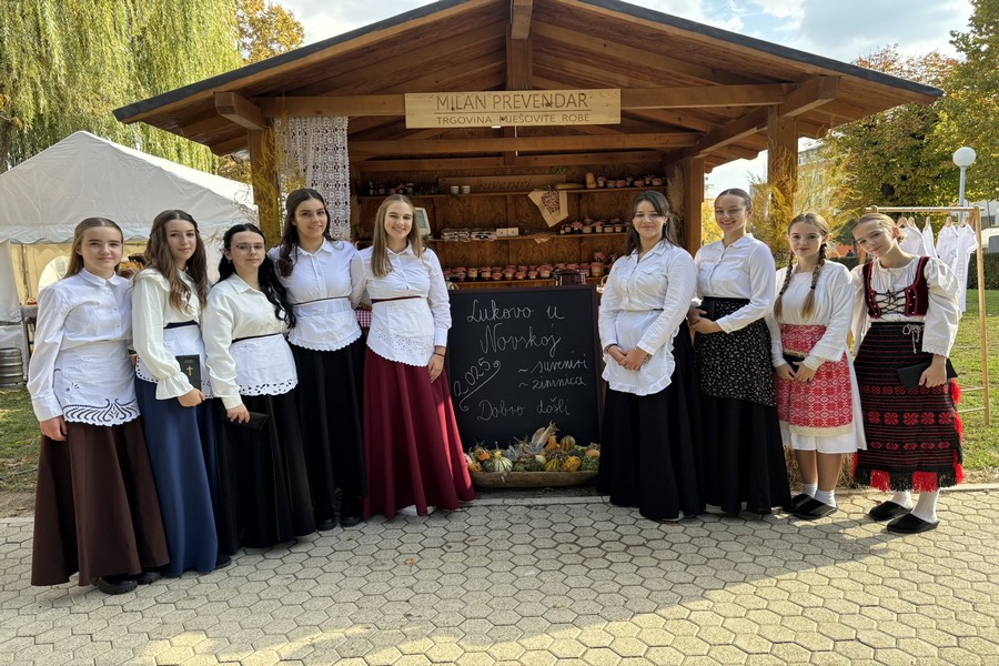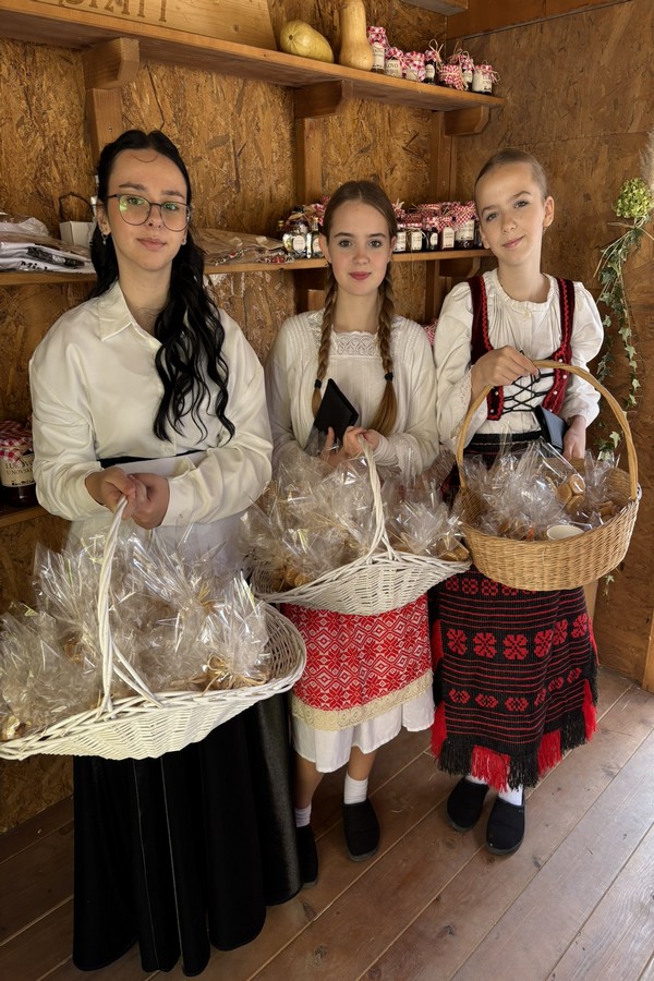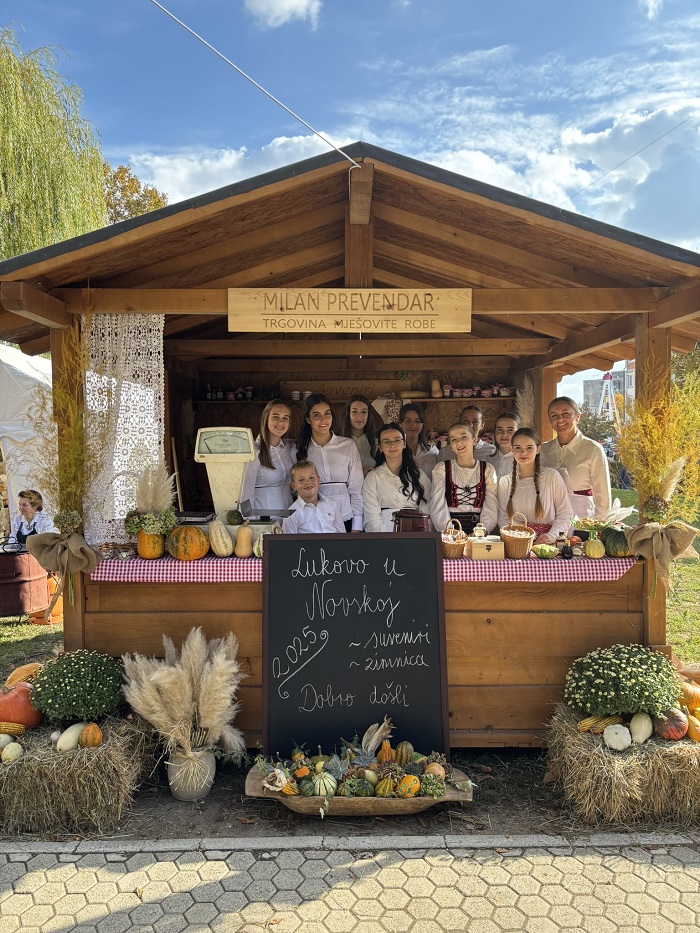 Učenička zadruga s ponosom je sudjelovala na manifestaciji Lukovo u Novskoj, u sklopu kirvaja s daškom prošlosti, gdje smo uprizorili trgovinu s kraja 19. stoljeća. Tijekom dva dana trajanja događanja, 18. i 19. listopada naš je štand privukao brojne posjetitelje iz svih krajeva Hrvatske, koji su s velikim zanimanjem uronili u atmosferu nekadašnjeg života. Posjetitelji su imali priliku kušati kruh i mast, uživati u najfinijim domaćim medenjacima te kupiti raznovrsnu domaću zimnicu i brojne suvenire. Svaki detalj bio je pažljivo osmišljen kako bi dočarao duh prošlih vremena i pružio autentično iskustvo. Iza ovog uspješnog nastupa stoji višednevna priprema – roditelji su velikodušno donirali zimnicu i jesenske plodove, dok su učenici s puno truda i entuzijazma pekli mirisne medenjake. Zajedničkim radom i zalaganjem stvorili smo toplu, domaću priču koja je oduševila sve posjetitelje.