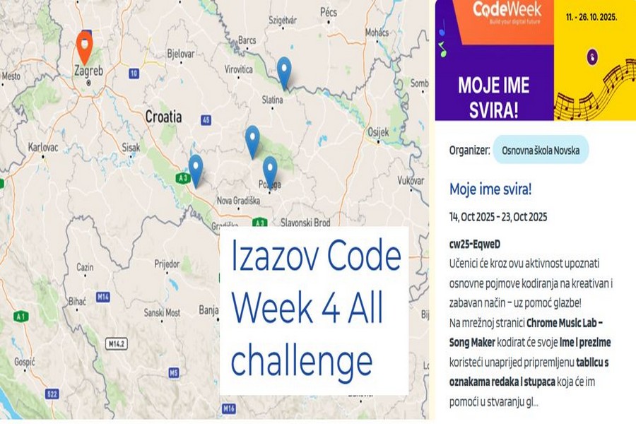U sklopu Europskog tjedna programiranja (EU Code Week 2025), učenici 2. A razreda su sa svojom učiteljicom Ksenijom Lekić realizirali aktivnost „MOJE IME SVIRA!“. Povezali su kodiranje i glazbu, stvarajući jedinstvene skladbe koje predstavljaju njihova imena.