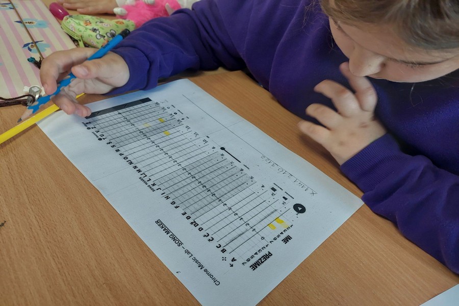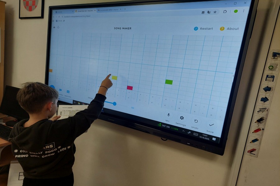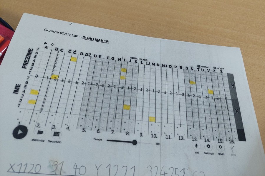 Svoj su kÔd zatim prenijeli u aplikaciju Chrome Music Lab – Song Maker, gdje je svako slovo postalo nota u melodiji. Promjenom ritma, tempa i zvuka glazbala skladali su jedinstvene glazbene minijature.