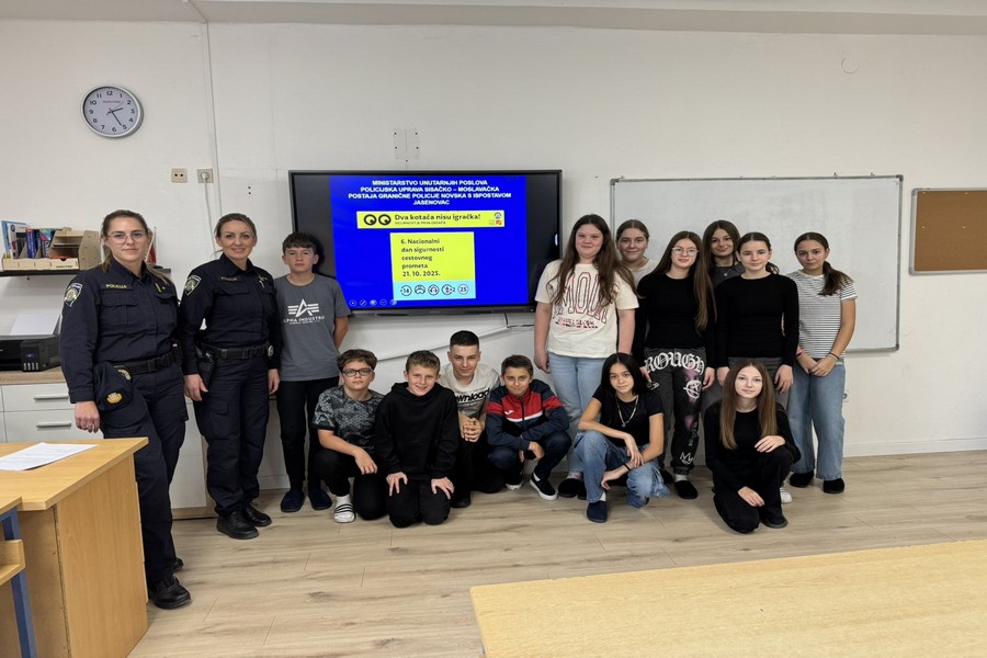 U ponedjeljak, 20. listopada 2025., u sklopu obilježavanja Nacionalnog dana sigurnosti cestovnog prometa, naše su učenike sedmih razreda posjetile predstavnice Postaje granične policije Novska s ispostavom Jasenovac – Suzana Iličić Šakić i Lana Grebenar. Tijekom zanimljivog i poučnog predavanja učenici su imali priliku ponoviti najvažnije sigurnosne odredbe u prometu te naučiti kako se odgovorno ponašati kao sudionici u prometu. Na konkretnim su primjerima mogli vidjeti što se događa kada se prometna pravila ne poštuju i koje mogu biti posljedice takvog ponašanja – od ozljeda do različitih kaznenih mjera poput odgojnih mjera, kazni, mjera sigurnosti i prekršajnih sankcija. Nacionalni dan sigurnosti cestovnog prometa obilježava se 21. listopada s ciljem podizanja svijesti javnosti o važnosti odgovornog ponašanja u prometu te smanjenja broja prometnih nesreća, ozlijeđenih i smrtno stradalih osoba na cestama.