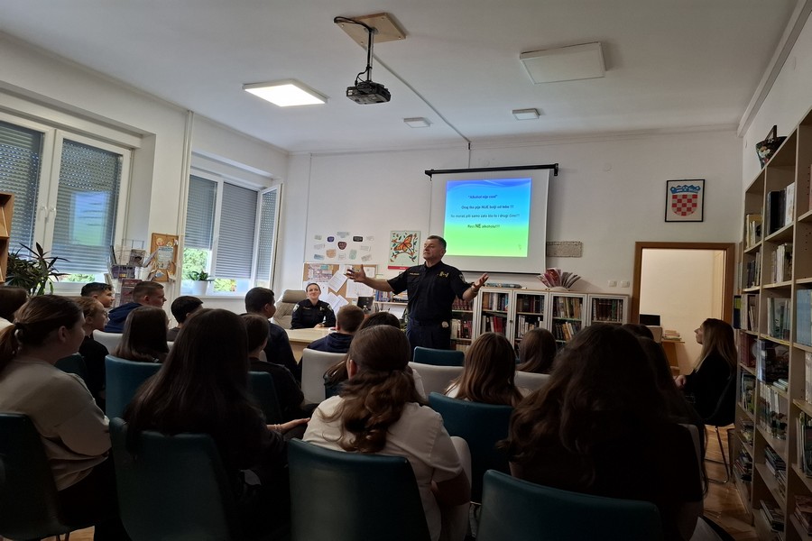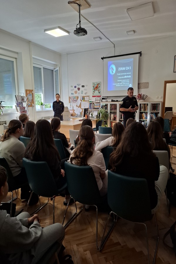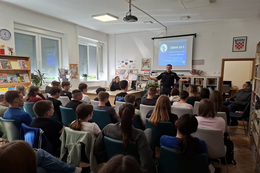 Dana 4. studenoga 2025. godine u našoj je školi održano predavanje u sklopu nacionalnog preventivnog projekta „Zdrav za 5“ za učenike osmih razreda. Predavanje su vodili policijski službenici za prevenciju, Željko Šalković i Suzana Iličić Šakić, koji su učenicima na zanimljiv i pristupačan način govorili o važnosti zdravih životnih navika i prevenciji ovisnosti.