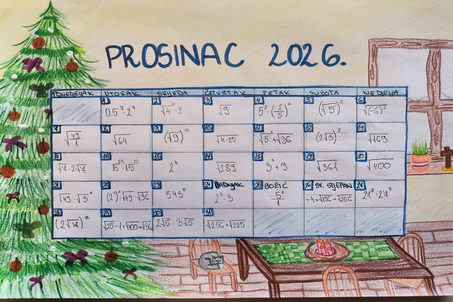 I studeni je prošao u matematičkom tonu. Učenici 6. razreda proučavali su svojstva trokuta rezanjem trokuta od papira. Sedmaši su na zanimljiv način učili o svojstvima vektora, dok su osmaši produbili svoje znanje o potencijama i korijenima radom na projektu Kalendar. Sustave su uvježbavali rješavanjem na uspravnim pločama. Obilježili smo i Međunarodni dan izumitelja. Rješavajući različite zadatke o trokutu učenici 6. razreda saznali su više o nekim izumiteljima. Učenici 7. razreda osmislili su svoje matematičke izume koji bi jednog dana mogli pomoći svim matematičarima u raznim zadacima. Zadatak je bio prikazati i primjenu izuma na konkretnom matematičkom zadatku. Mjesec je prošao i u znaku natjecanja, iza nas je Regionalno natjecanje Sudoku te natjecanje iz matematike i fizike “Naboj Junior”. A obilježili smo i Svjetski dan tablice množenja.