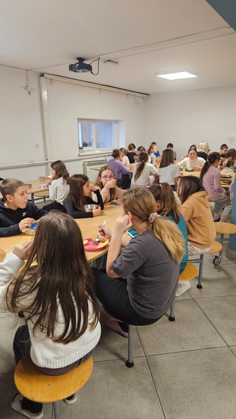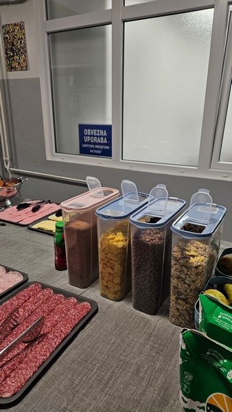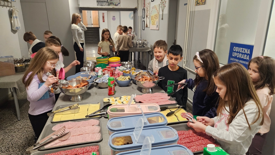 U sklopu doručka učenicima su dostupni topli napitci, različiti namazi, kruh, jogurti, pahuljice, griz, jaja, hrenovke, voće i mnoge druge namirnice primjerene dobi djece i školskom okruženju. Ponuda se kontinuirano prati i po potrebi prilagođava interesu i navikama učenika, uz zadržavanje nutritivno uravnoteženog obroka. U popodnevnoj smjeni organizacija prehrane ostaje nepromijenjena. Učenicima se i dalje poslužuju kuhani obroci, bez izmjena u načinu organizacije i posluživanja.