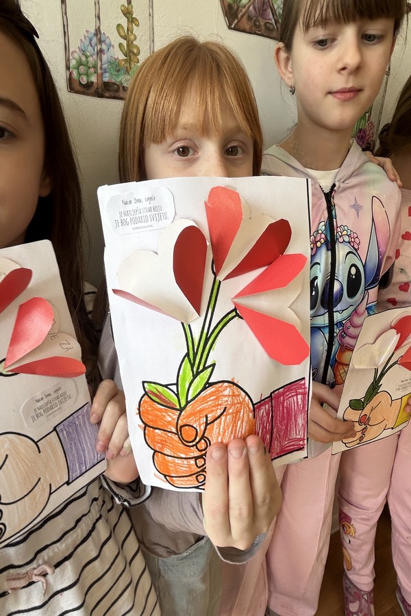 Učenici 2.c razreda na izvannastavnoj aktivnosti s puno su truda i kreativnosti izradili prigodne čestitke za svoje mame povodom obilježavanja Međunarodnog dana žena. Prigodnim čestitkama i toplim porukama pokazali su koliko su zahvalni i koliko vole svoje mame. Ova mala, ali iskrena gesta razveselit će mnoge majke i podsjetiti koliko su pažnja i lijepe riječi važne.