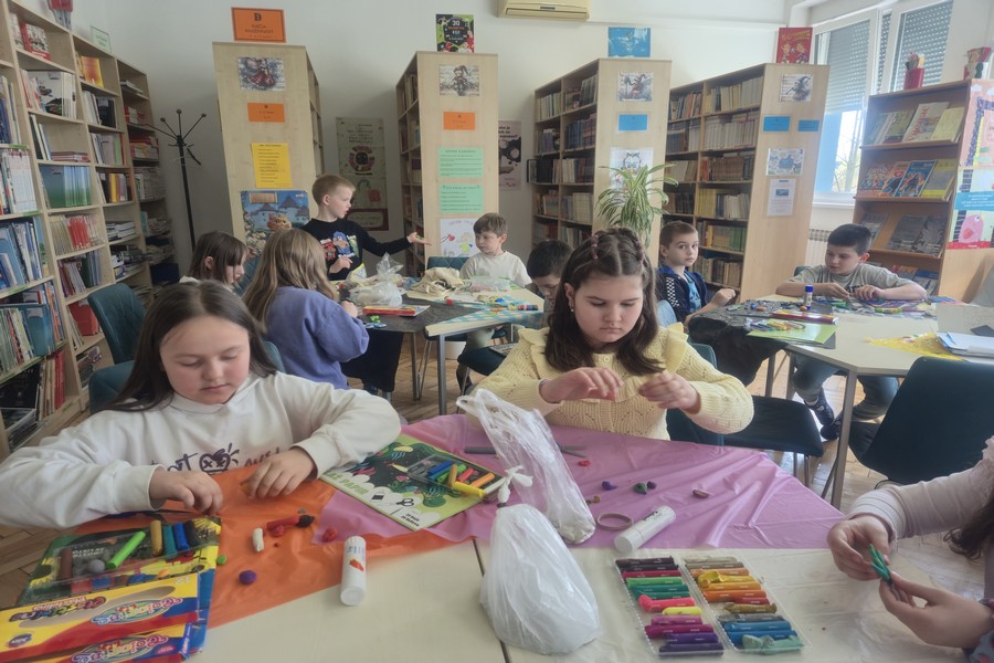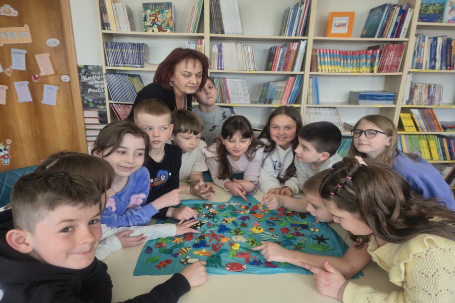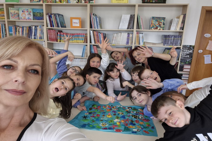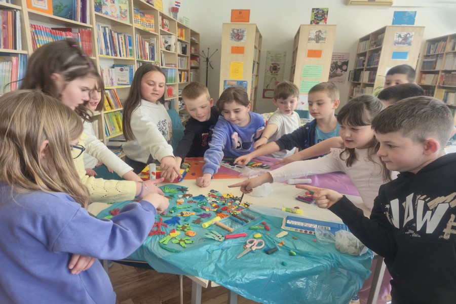 U školskoj knjižnici održana je čitateljsko-kreativna radionica s učenicima 2.a razreda u sklopu međunarodnog projekta Naša mala knjižnica 1. Radionica se temeljila na interpretaciji slikovnice Pod valovima, autorice Maritxell Martí, koju su s učenicima interpretirale knjižničarka Melisanda Masnica i učiteljica Ksenija Lekić. Priča je učenike uvela u svijet mora i podmorja te potaknula njihovu maštu i interes za istraživanje morskog života.
