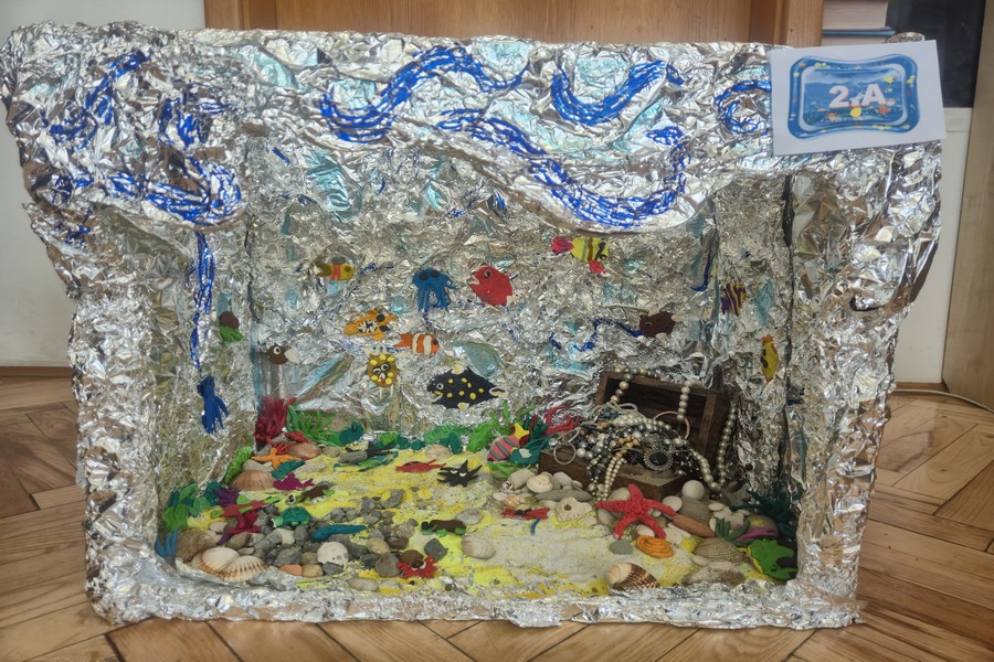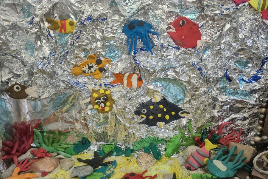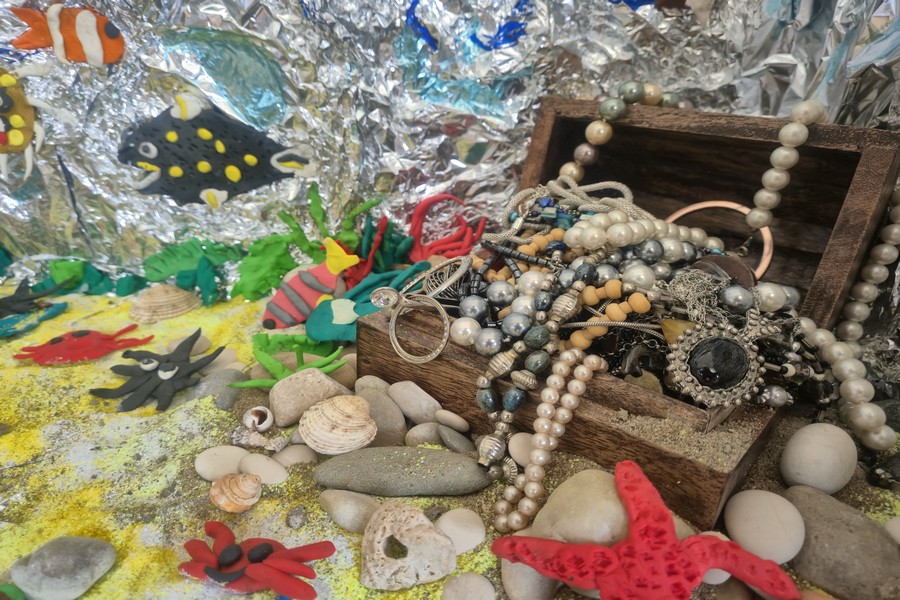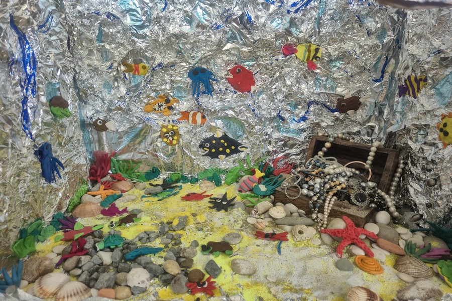 U kreativnom dijelu radionice izrađivali su nagradni zadatak – škrinju s blagom, pri čemu su koristili različite materijale koje su donijeli od kuće, poput kutija, aluminijske folije, kamenja, školjki, nakita i plastelina, kojim su oblikovali raznoliku floru i faunu morskog dna. Nastajali su tako maštoviti prikazi riba, školjki, morskih zvijezda, koralja i drugih morskih organizama, čime su učenici dodatno razvijali finu motoriku, kreativnost i osjećaj za oblikovanje.